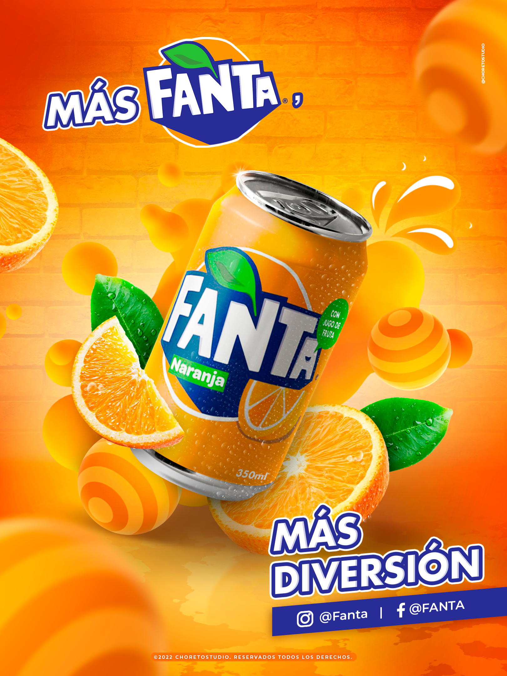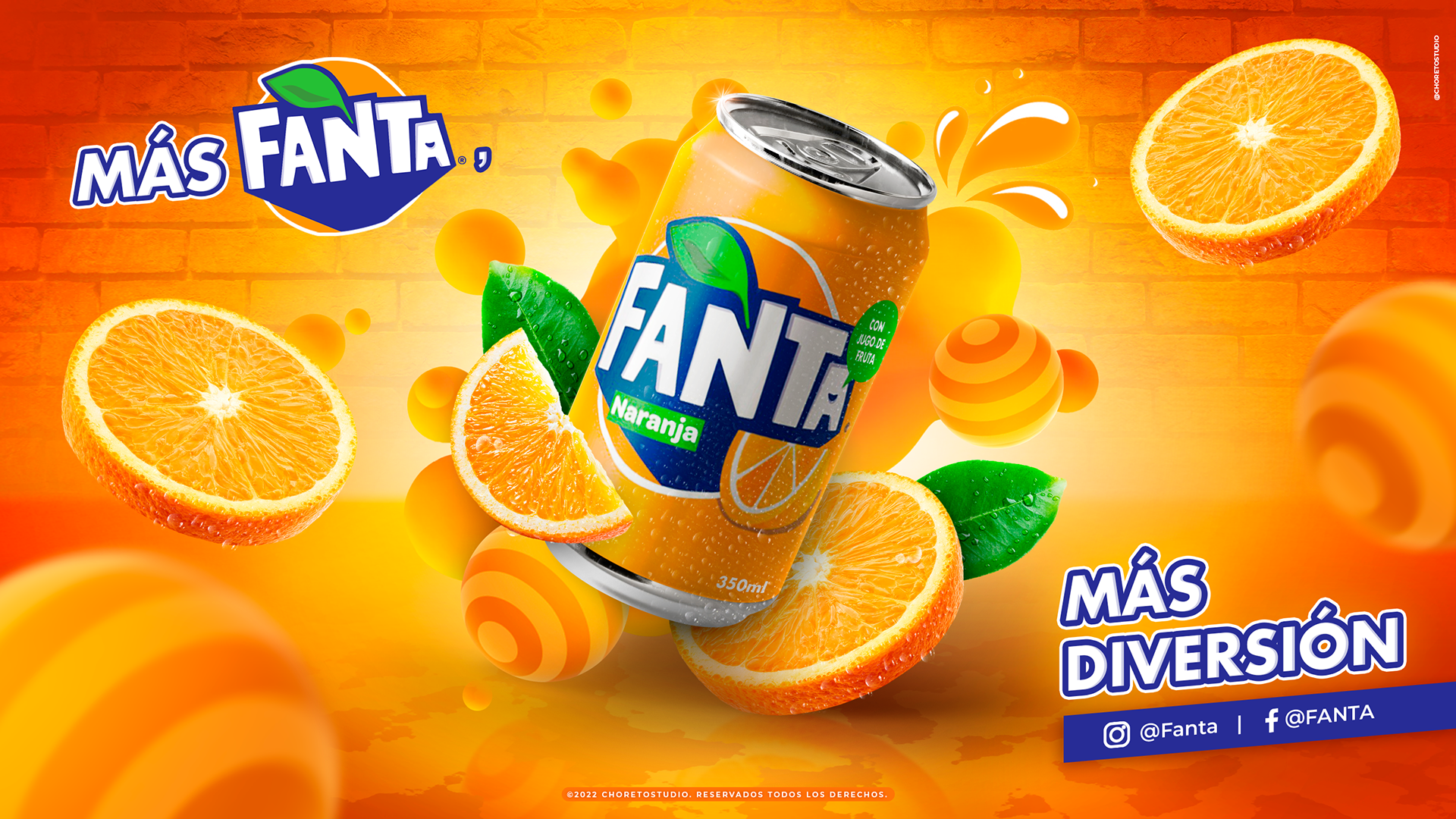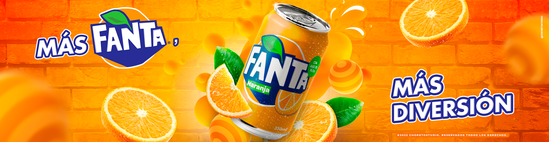 Marca: Fanta Proyecto: Fanta más diversión Año: 2022 Equipo Creativo: Orlando R. Sánchez (Key Visual - Diseño Gráfico - Modelado 3D)