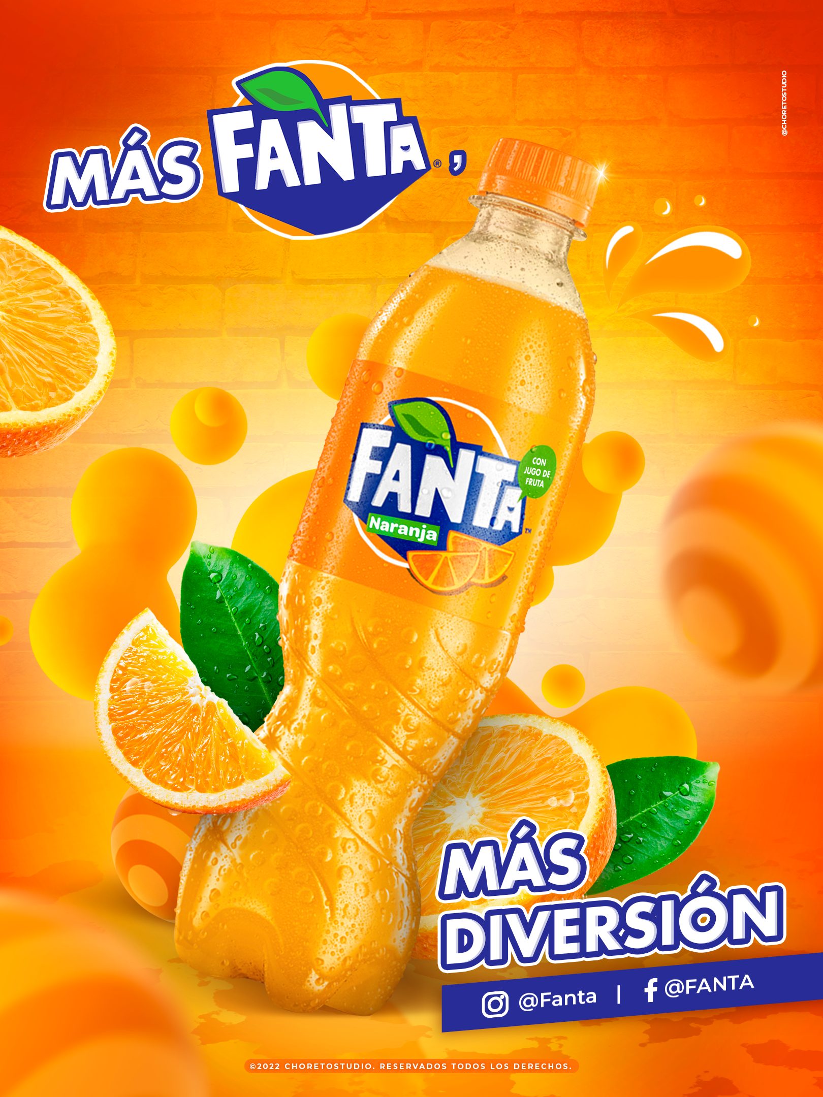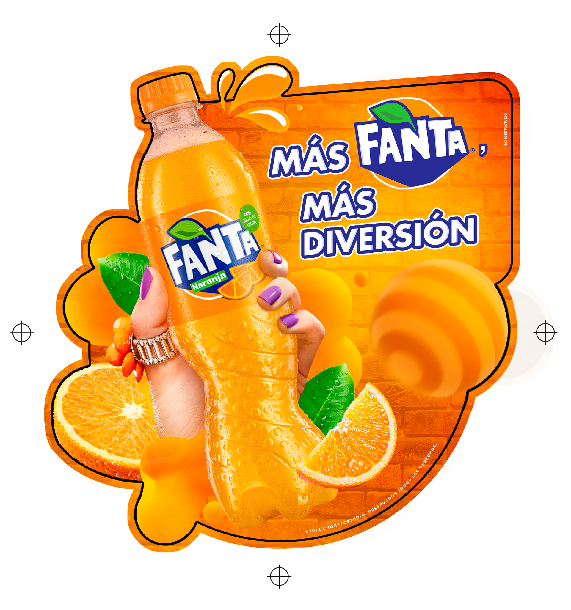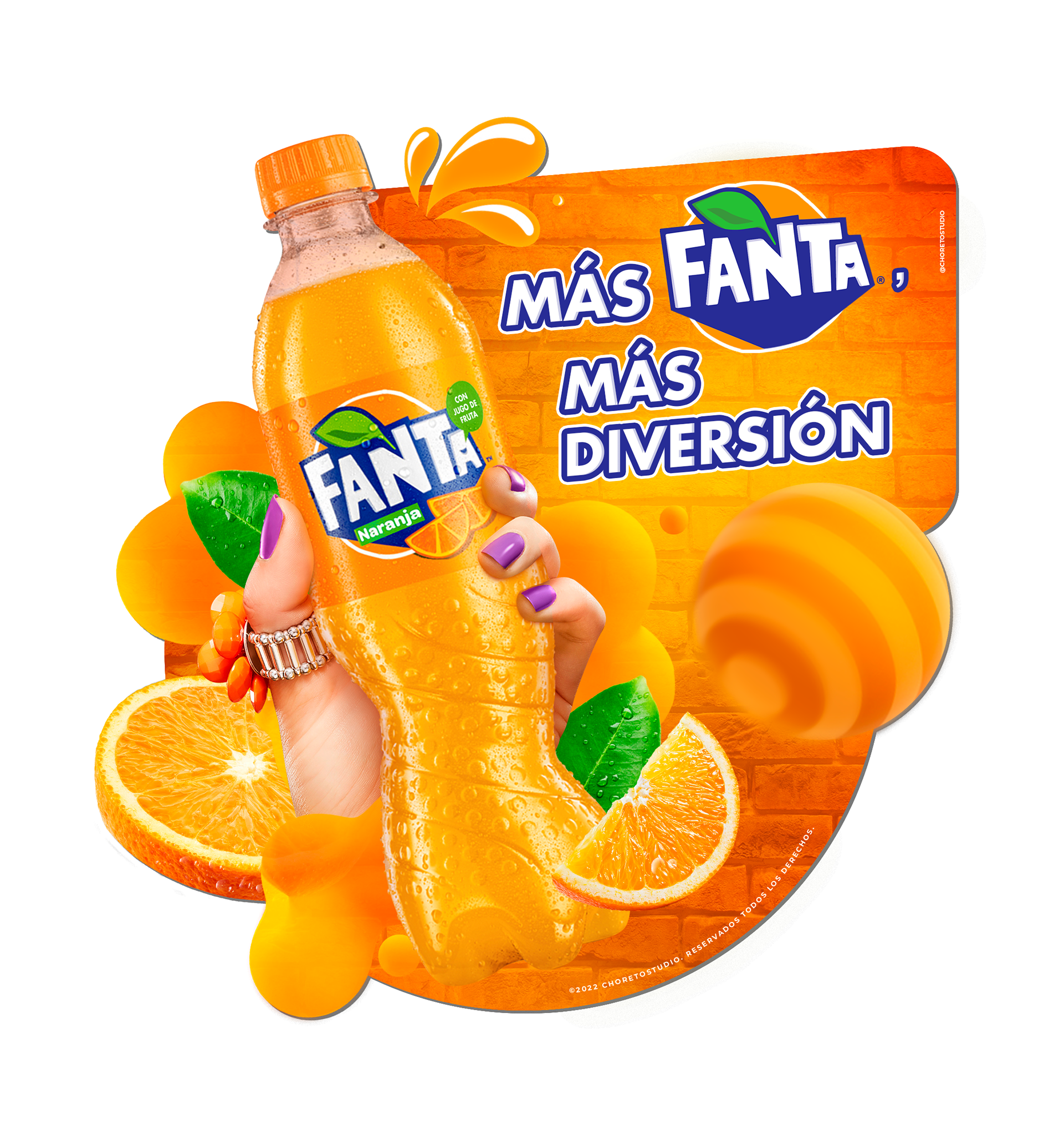 Marca: Fanta Proyecto: Fanta más diversión Año: 2022 Equipo Creativo: Orlando R. Sánchez (Key Visual - Diseño Gráfico - Modelado 3D)