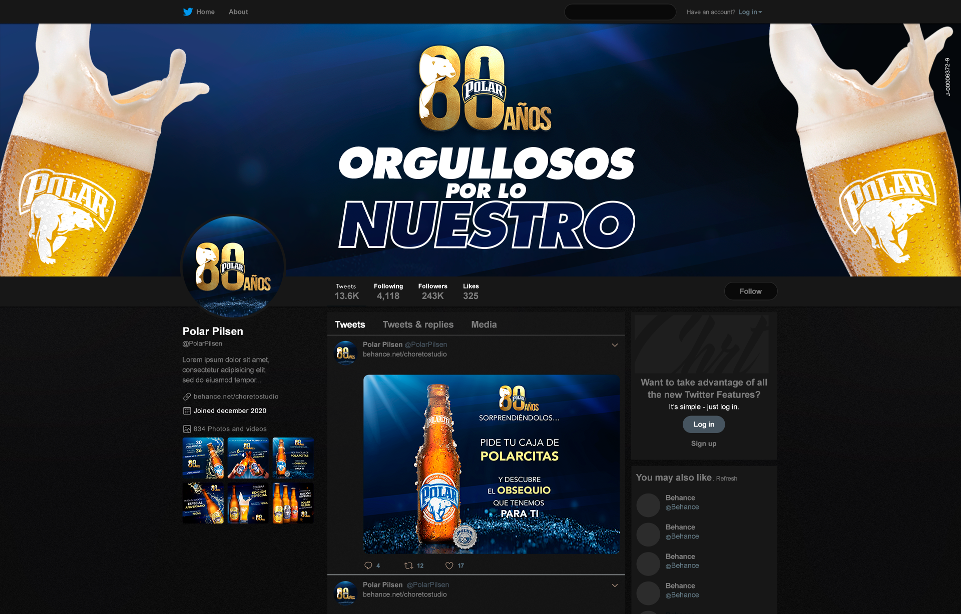 Cliente: La Web Mercadeo Interactivo Marca: Polar Pilsen Proyecto: Aniversario 80 Años Año: 2021 Equipo Creativo: Orlando R. Sánchez (Diseño Gráfico) Yeimarielith Gómez (Creativo)